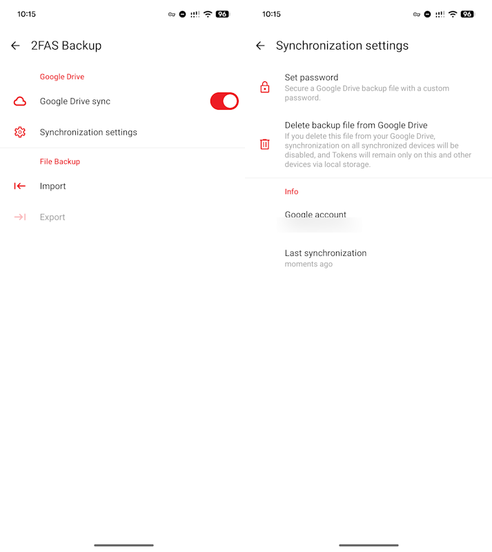 When you first launch the app, you’ll be prompted to set up key backup to Google Drive. By default the backup is created without a password, but you can add one later in the sync settings.