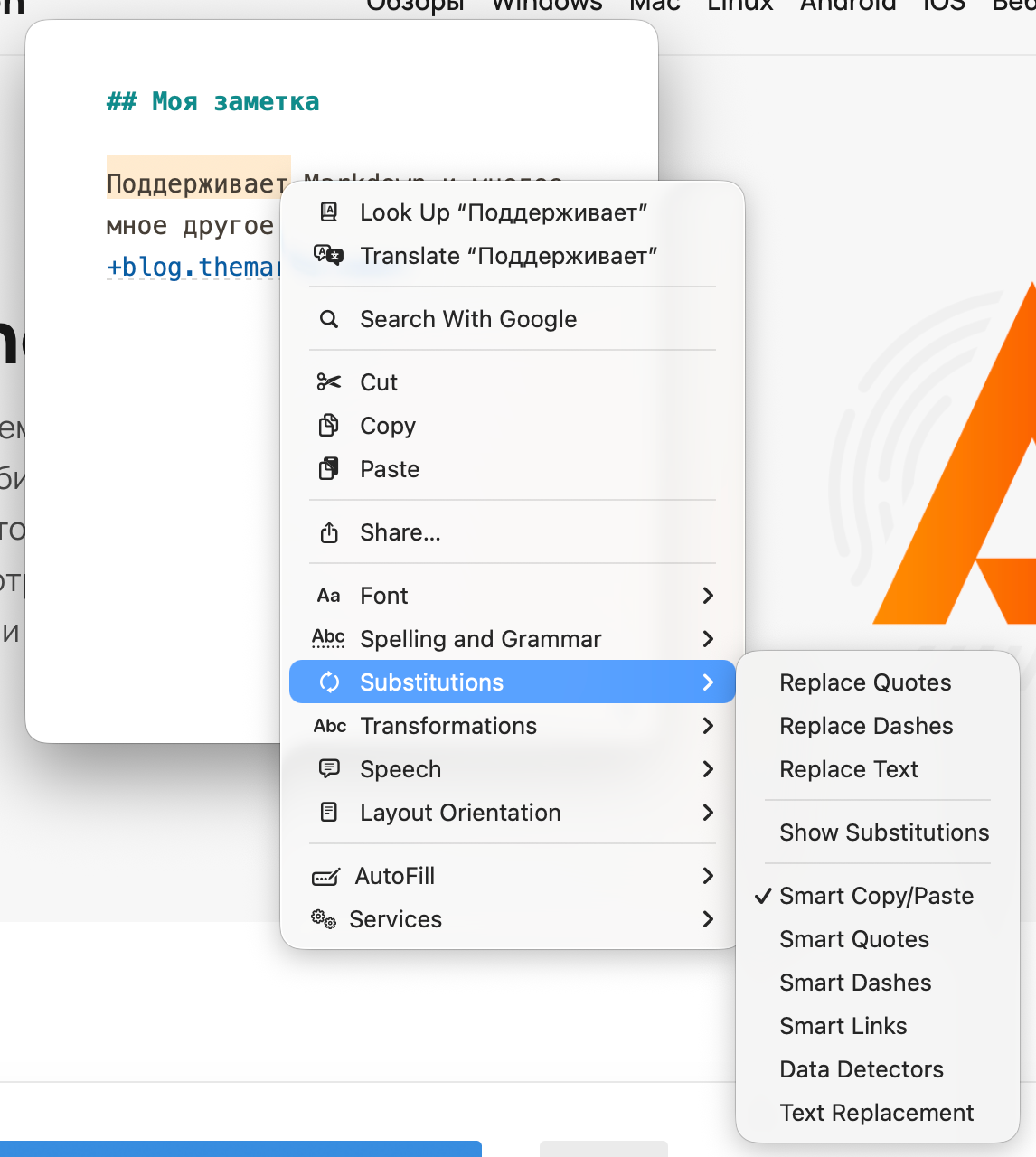 But behind this simple facade lies a wealth of useful features. Even from the screenshot above, you can see that the app supports Markdown formatting and quick text-processing functions: grammar checking, changing lowercase to uppercase, and similar tools.