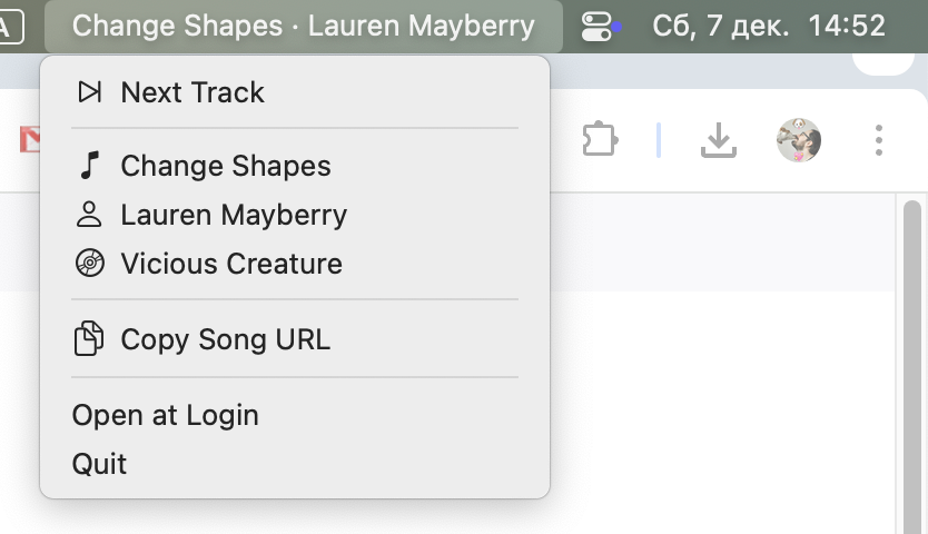 That’s why I always wanted to display the song title directly in the Menu Bar with the ability to quickly switch tracks. A small utility called SoundSeer solved this problem.