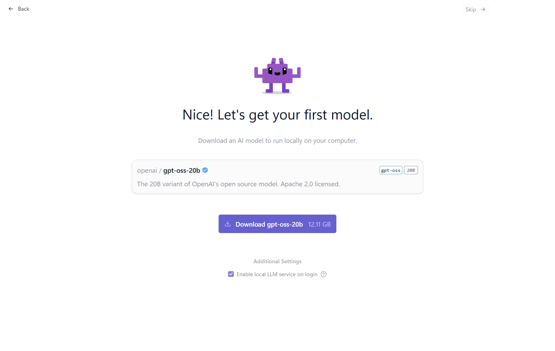 When you run LM Studio for the first time, it will guide you through the setup process and offer to download a ChatGPT-based neural network to your computer.