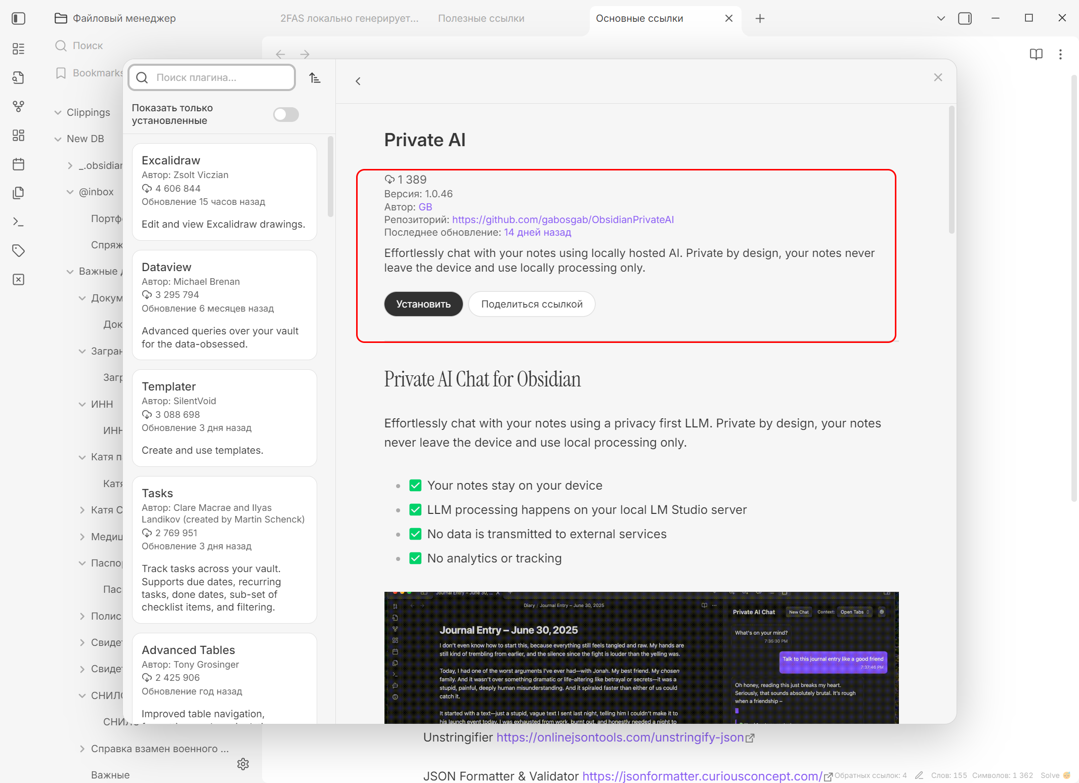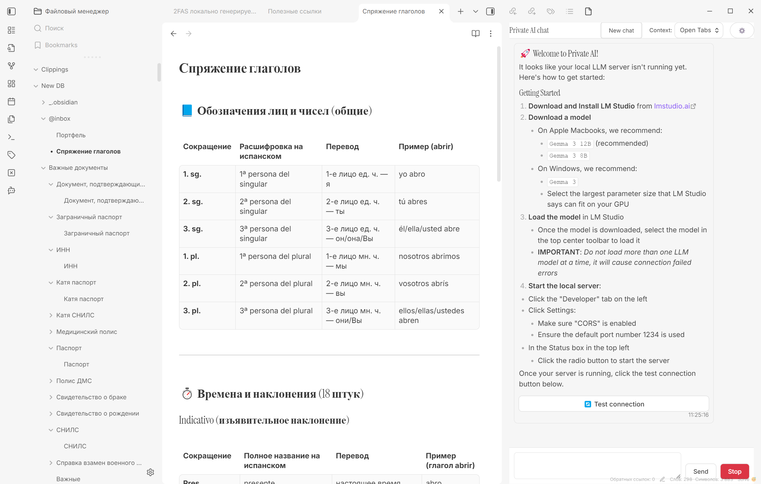 With the Private AI plugin, you can connect the local LM Studio neural network to Obsidian and chat with AI directly inside your notes.