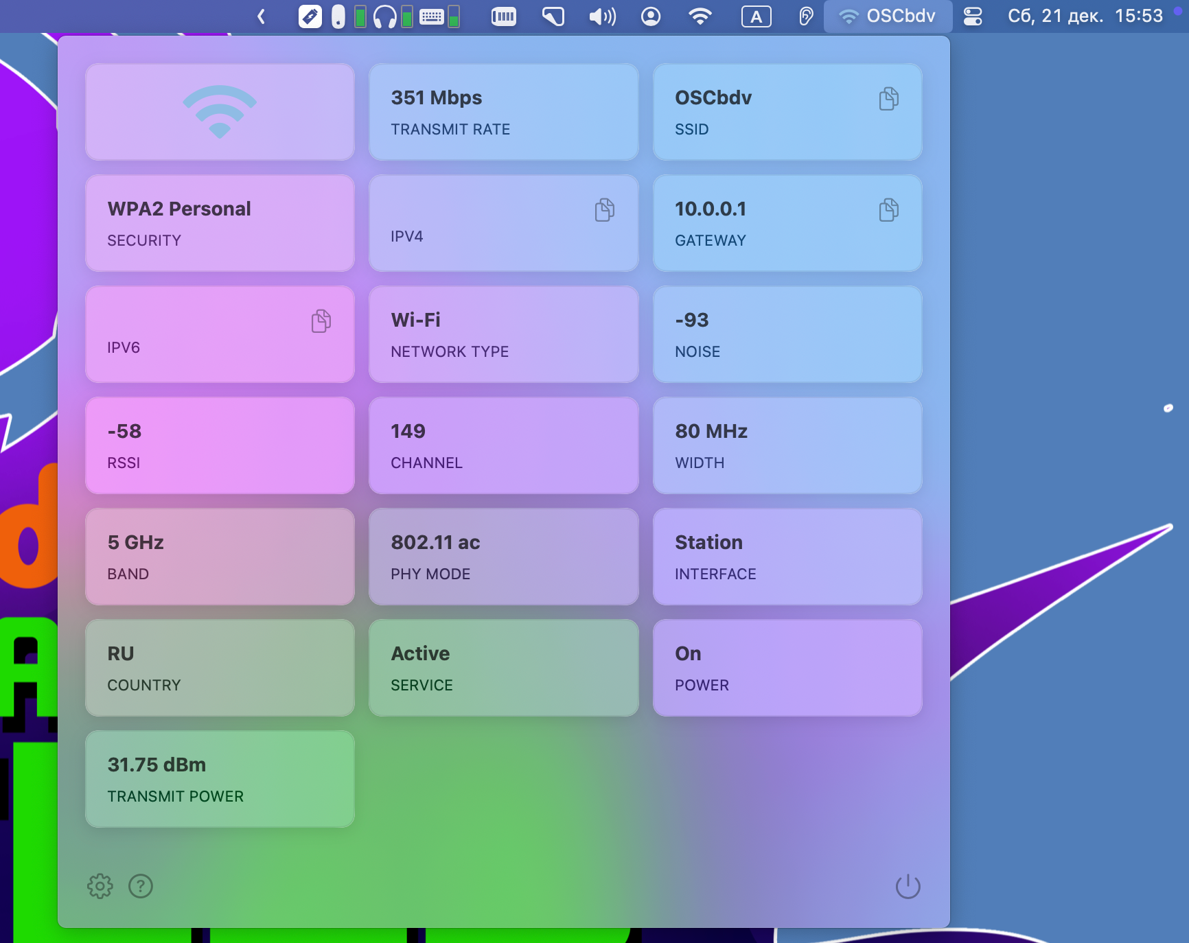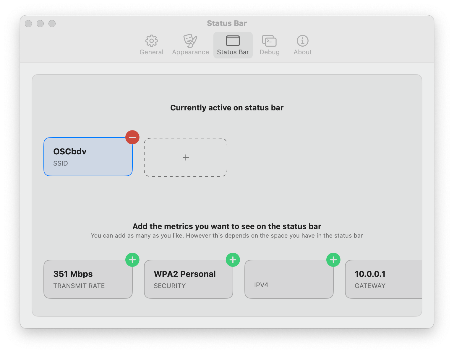 In the app settings, you can specify which networks to display, add extra metrics to the menu bar, and customize visual parameters for better usability.