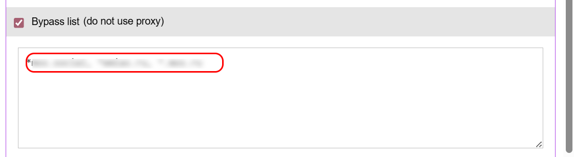 Below that, in the Bypass list section, you need to add a list of resources for which the specified proxy settings should not be applied. Wildcards are supported.