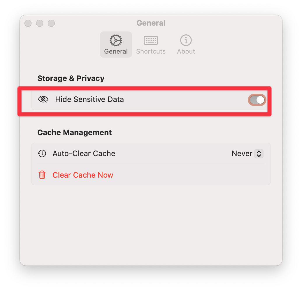 To enable this feature, make sure the “Hide Sensitive Data” option is turned on in the app settings.