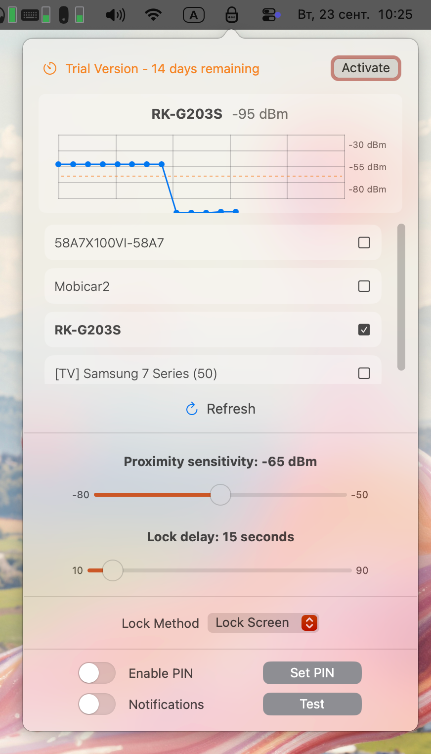 Try ProximityLock free for two weeks. After that you’ll need to purchase a one‑time license for $19.99.