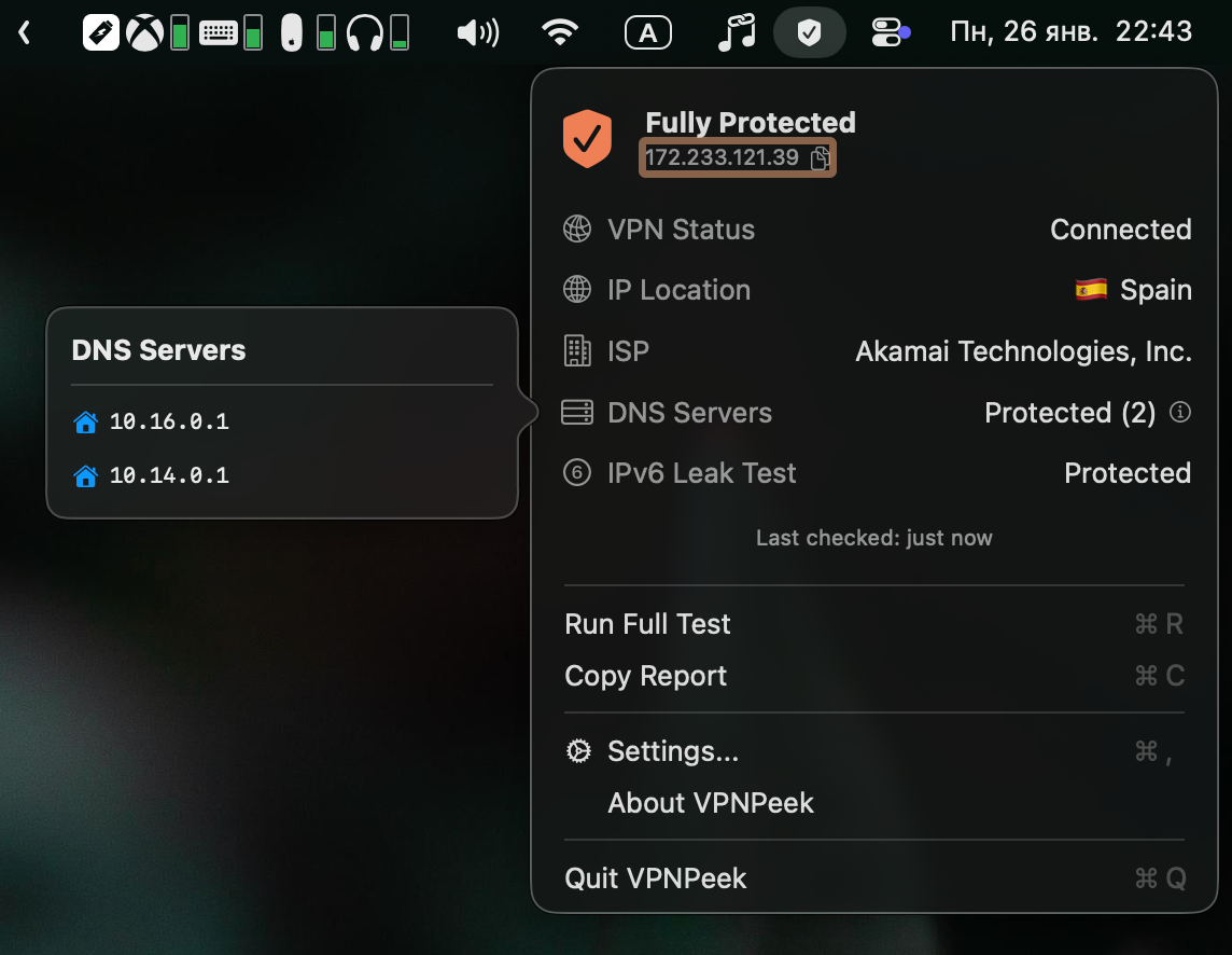 In this case, you can install the VPN Peek app, which displays all the most important information about your current VPN connection.