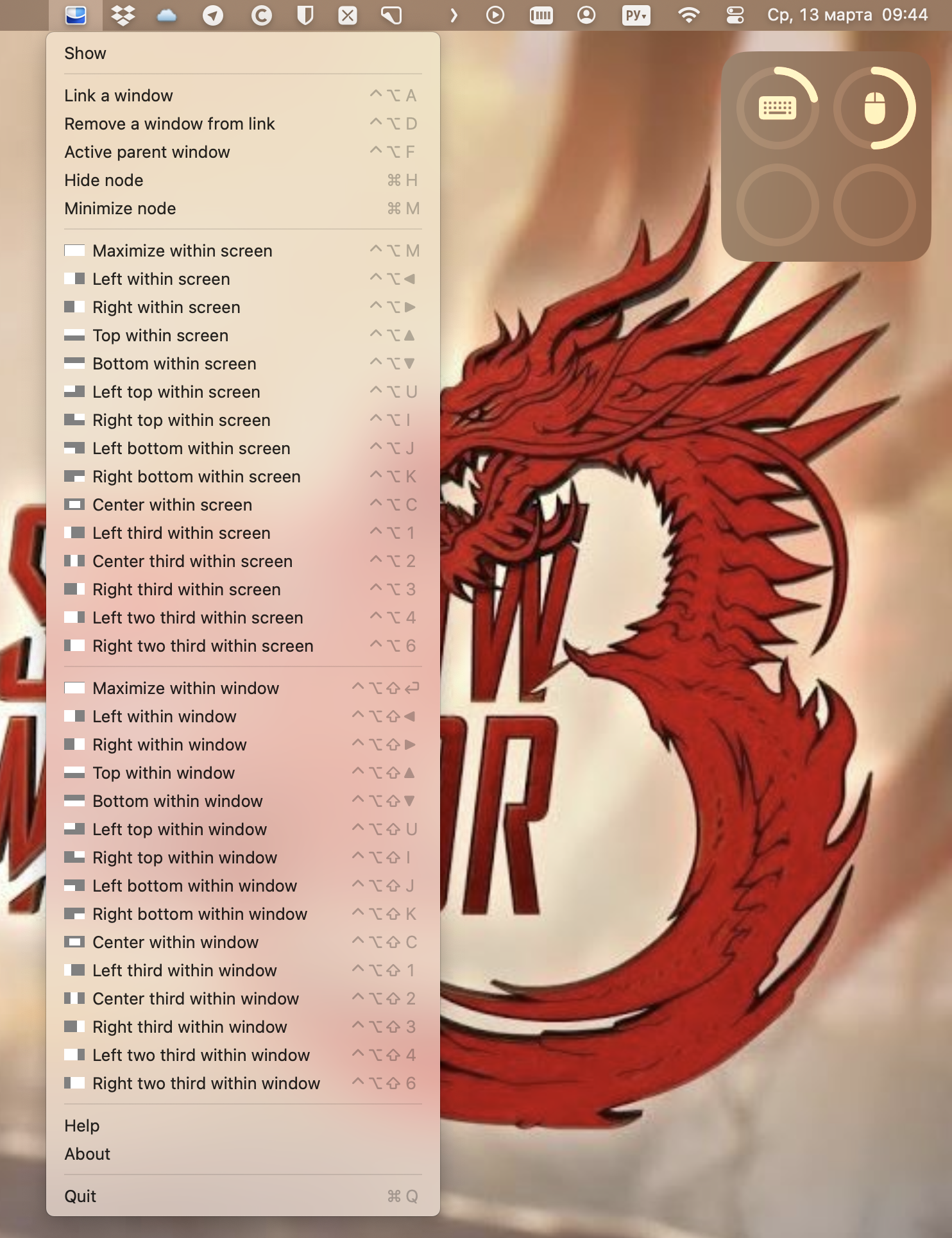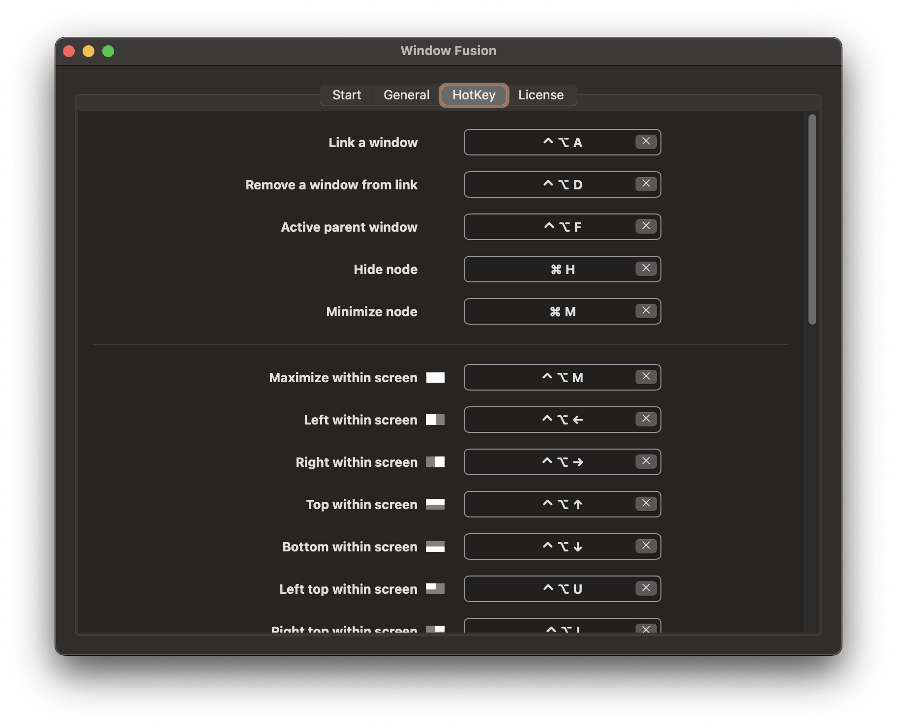 For regular windows, you also get the ability to manage their position on the screen using hotkeys.
