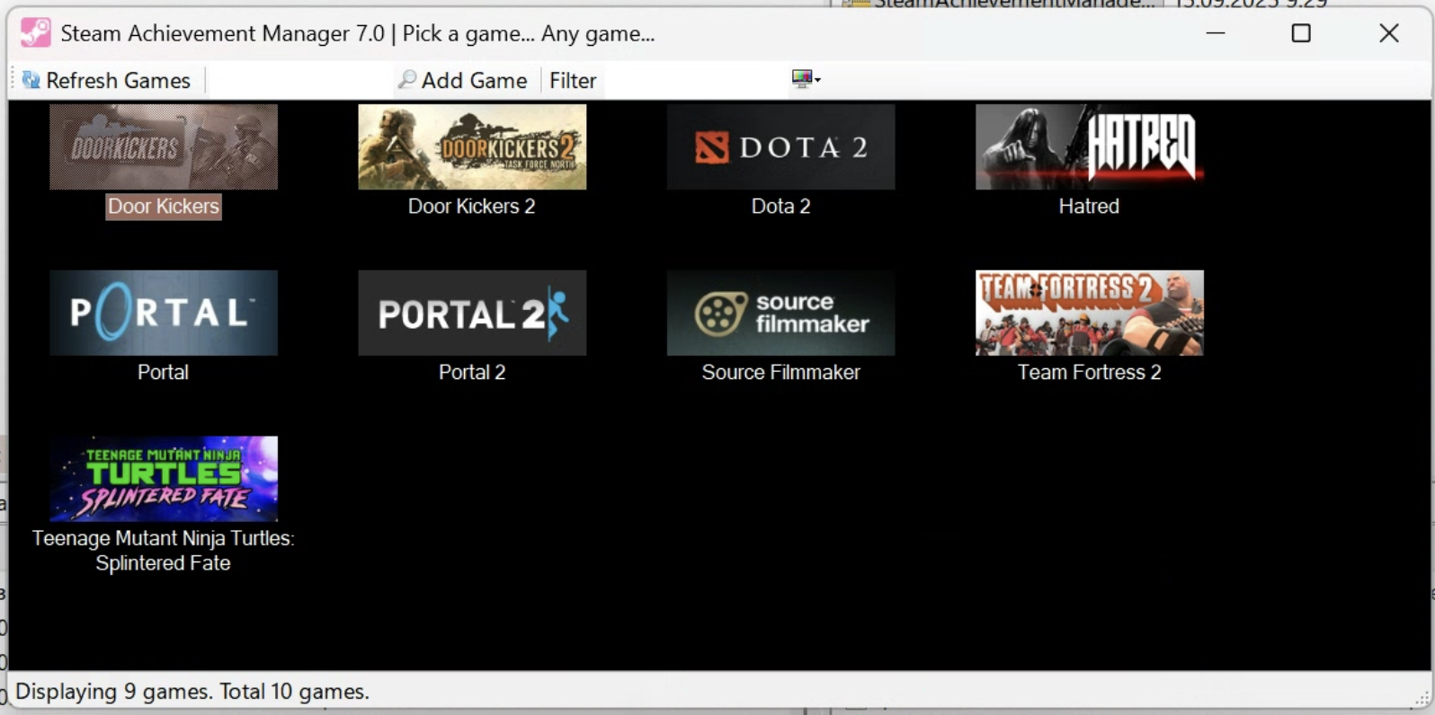 If needed, the resulting list can be sorted, searched by game title, or you can add a game manually.