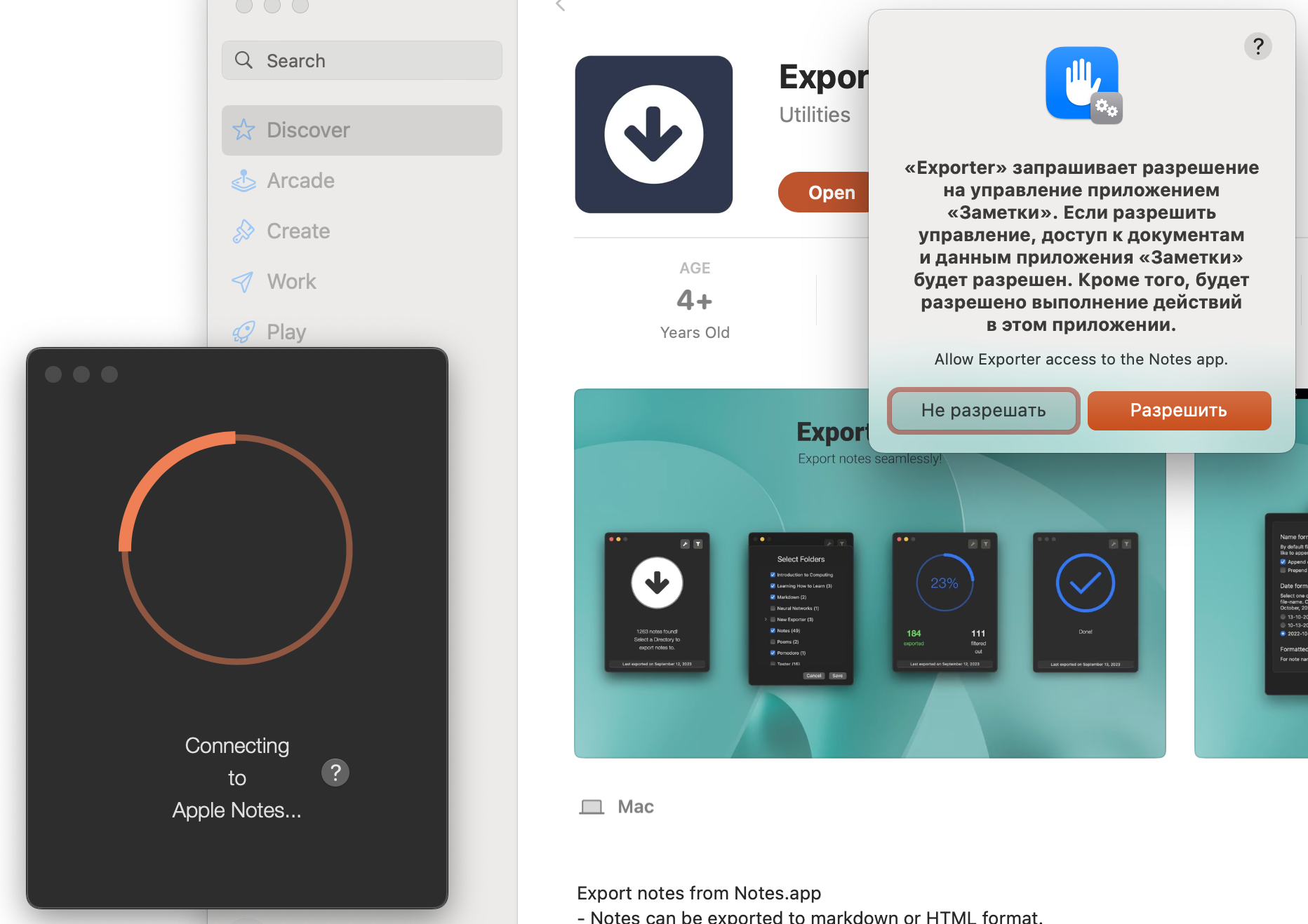 Upon first launch, Exporter will request permission and automatically search for notes in your account.