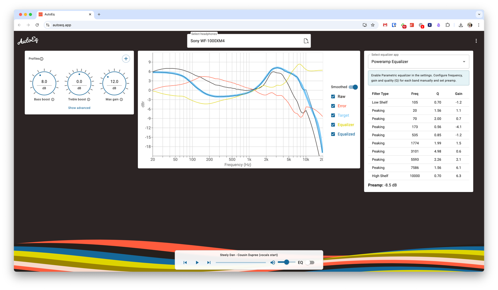 AutoEq is an open-source service that provides optimal equalizer settings and lets you quickly apply them to the desired app.