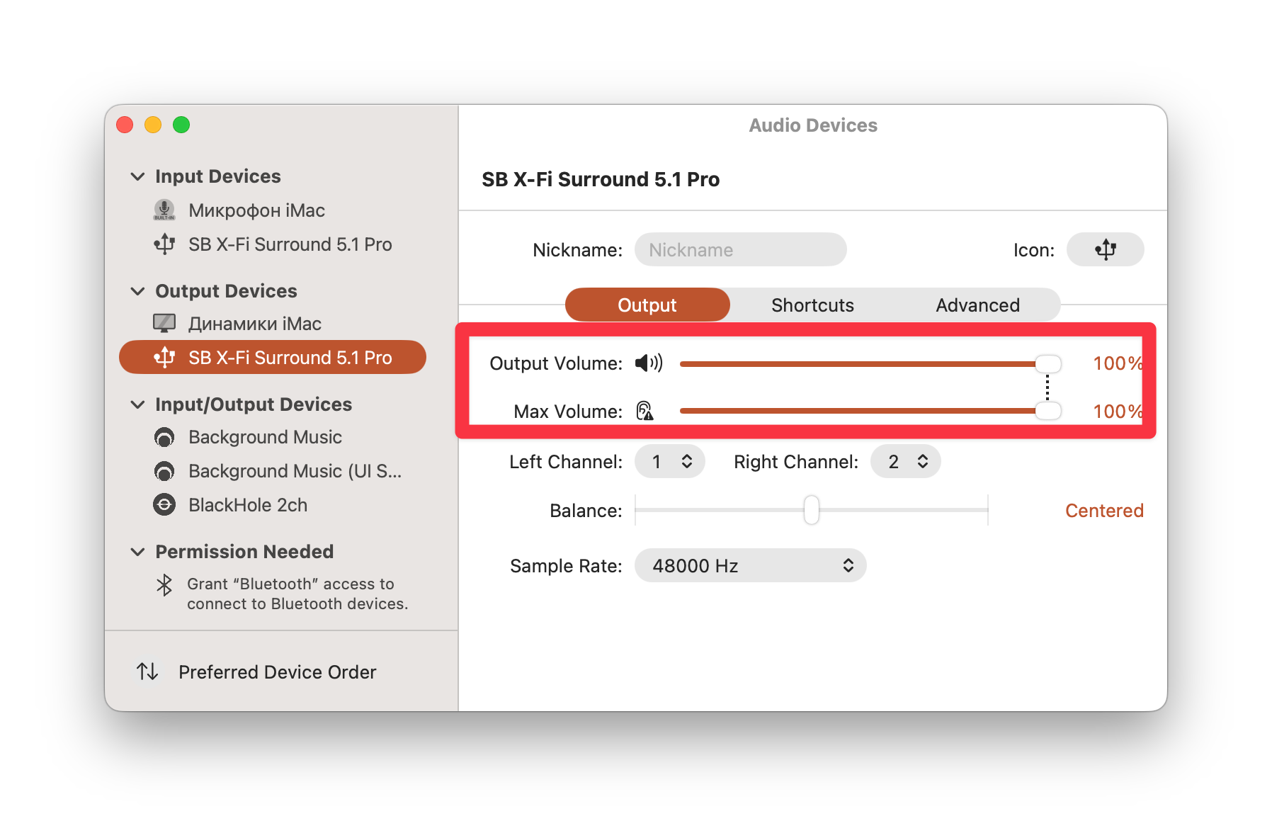 To set a limit, simply choose the desired device from the list and, on the right panel under Output, specify the maximum volume level using Max Volume.