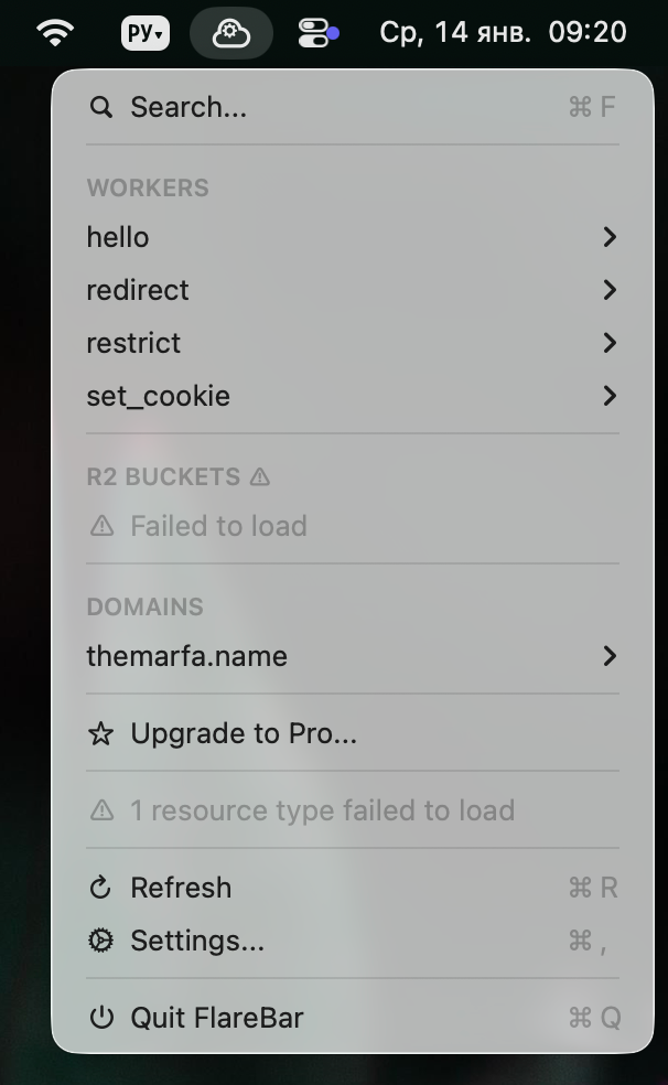 A useful solution in this case is FlareBar — an app that adds the ability to quickly view or update various parameters in your Cloudflare account directly from the menu bar.
