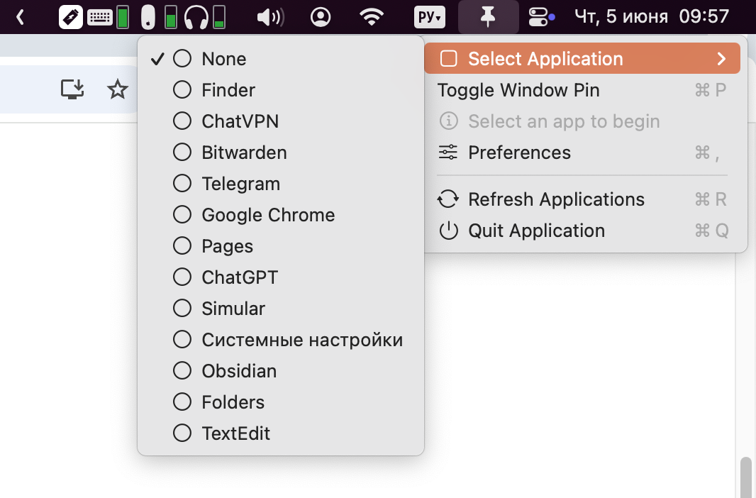 Once launched, you simply select the app you want to keep on top from the dropdown menu — and that’s it. If needed, you can switch the pinned app using hotkeys.