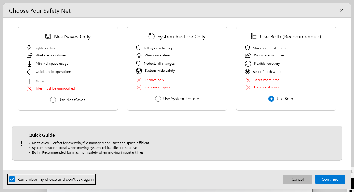 If you're using NeatShift for the first time, it will ask which backup method you prefer: