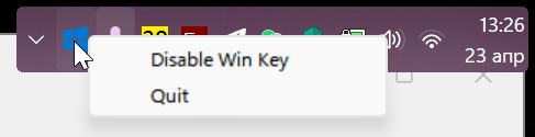 You can quickly disable it using the WinKey utility. It doesn’t require installation, and once launched, an icon will appear in your system tray.