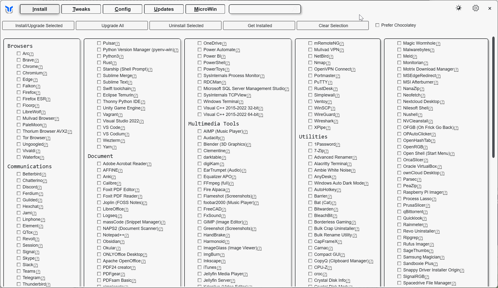 • Install – Install, update, or remove popular applications across different categories, including browsers, messengers, office suites, multimedia tools, and utilities.