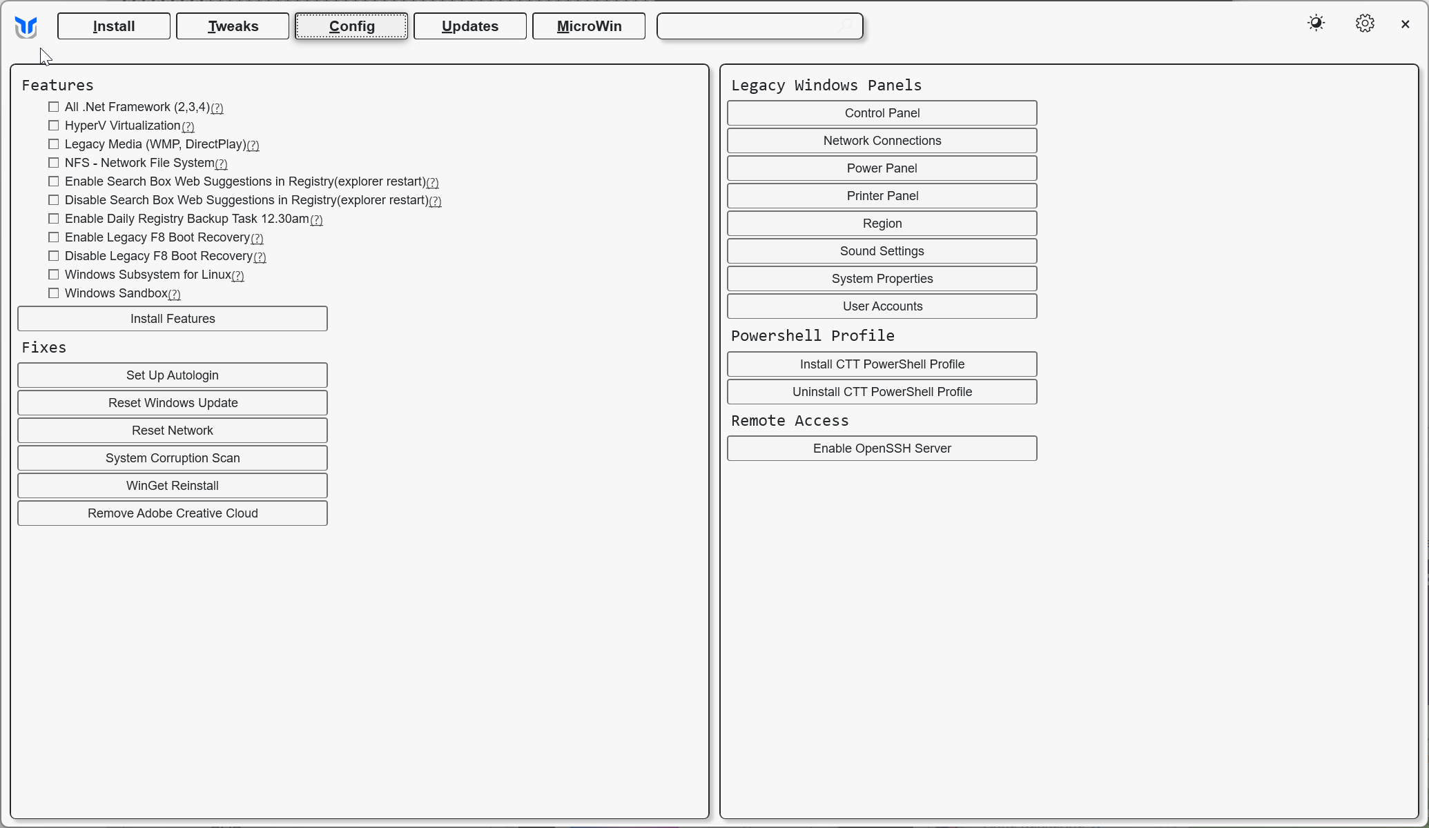 irm "https://christitus.com/win" | iexWithin seconds, the utility’s interface will launch, offering four main tabs for quick system configuration: