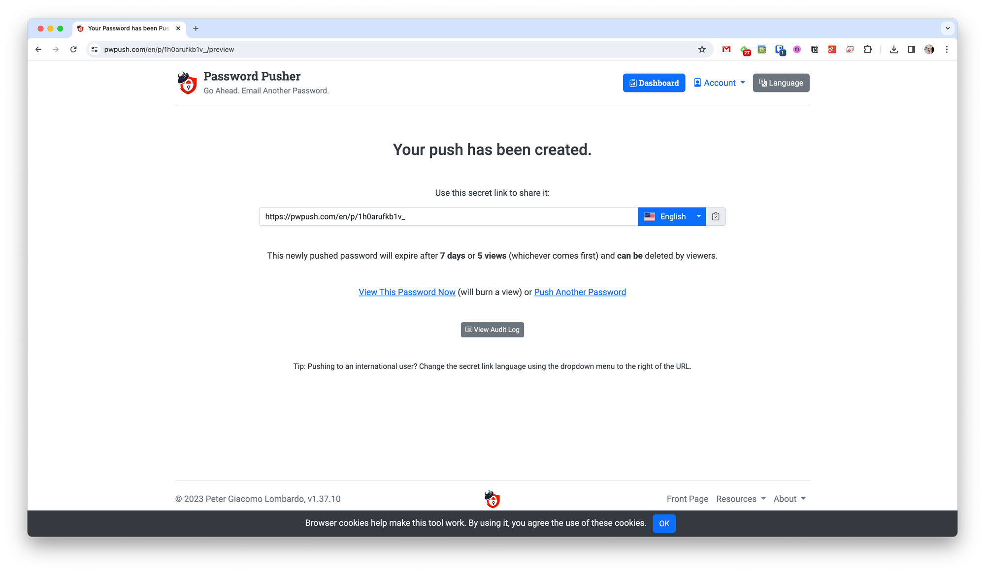 After that, you will receive a link that you can send to your conversation partner, and they will be able to access the hidden data behind it. In the Dashboard section, you can view which data was accessed and when.