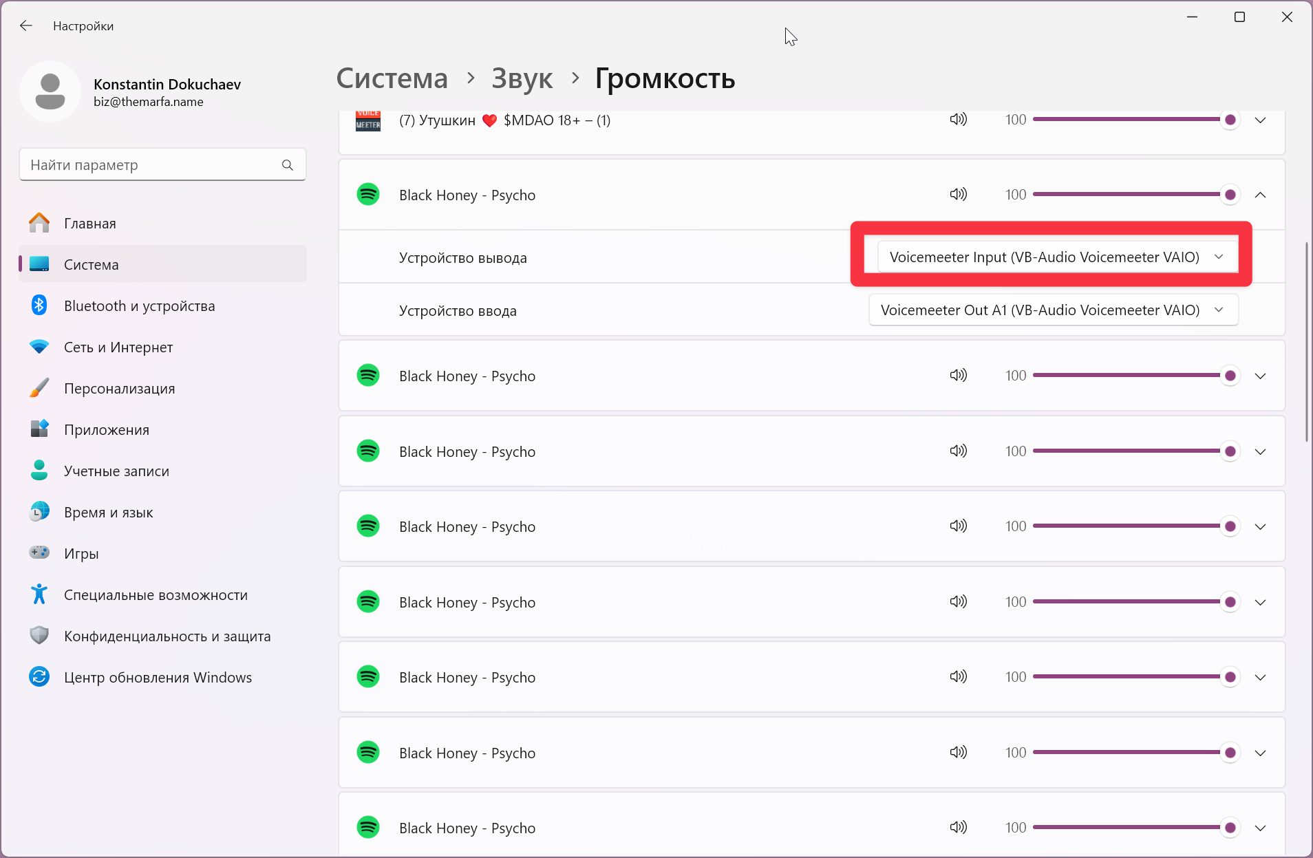 Alternatively, you can go to Windows Settings → System → Sound, and set Voicemeeter Input as the default output device for the entire system.