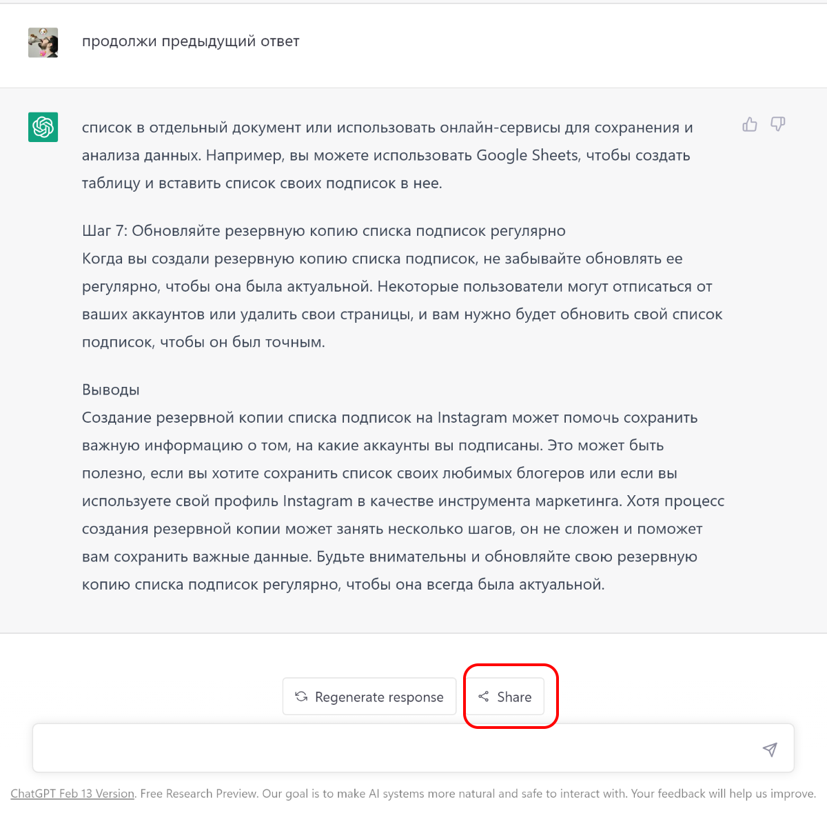 For example, you can install the ShareGPT extension, which adds a share button to your dialogue with the neural network.