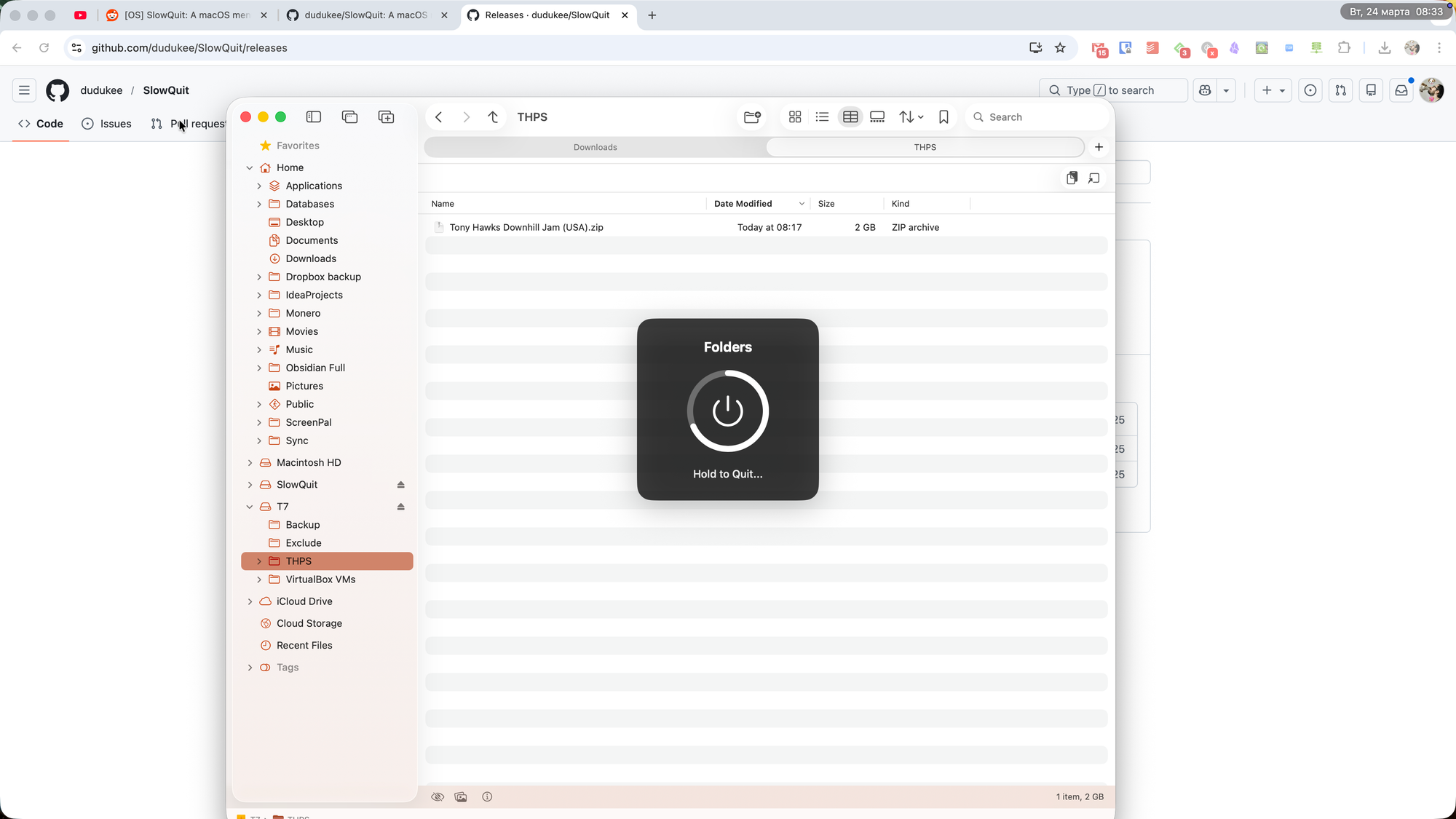 SlowQuit adds a delay timer to CMD+Q in macOS to prevent accidental app closures and give you time to cancel the action.