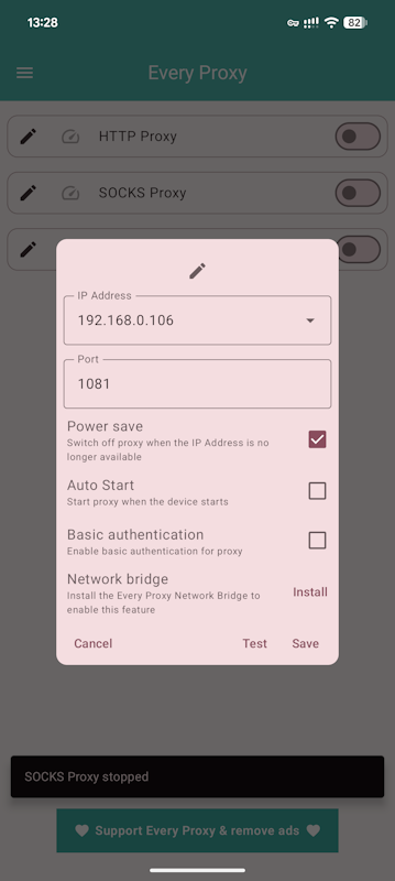 After that, you just need to connect using the specified parameters from the application or device you want to route through the proxy.