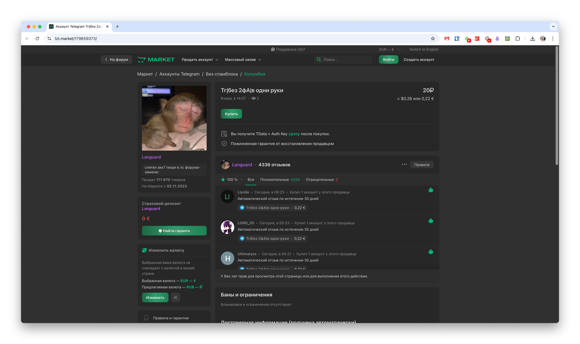 На сайте Lolzteam Market предусмотрена возможность провести сделку через гаранта — третье лицо, гарантирующее сохранность денежных средств. Продавец получает всю сумму только после того, как покупатель сможет воспользоваться аккаунтом. Впрочем, это не значит, что покупки без участия гаранта невозможны — чаще всего стороны рассчитываются напрямую. Ну а система отзывов поможет избежать обмана.
