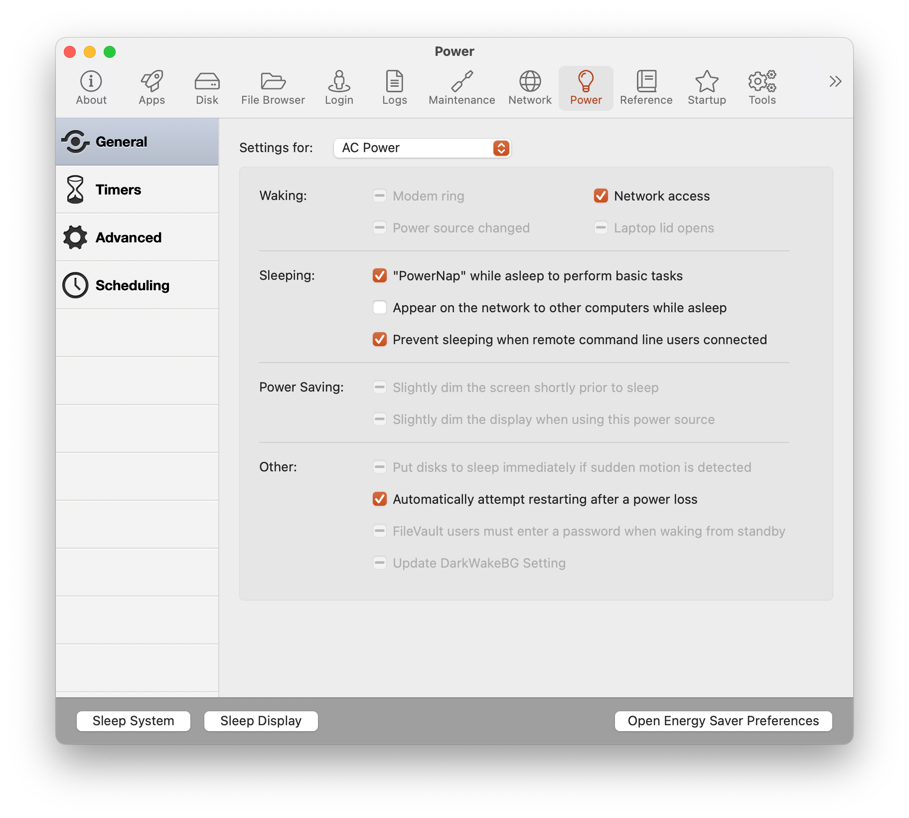 The default macOS power settings offer limited customization. MacPilot, however, enables fine-tuning for each power mode. You can adjust sleep mode settings for disks, displays, the system, and other components.