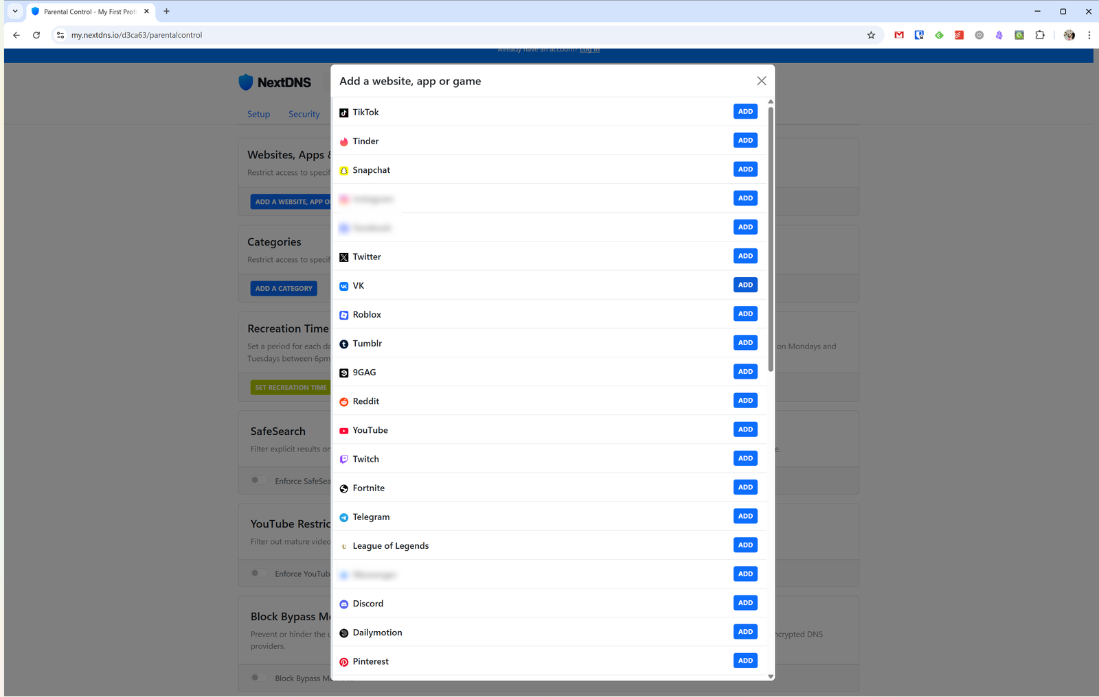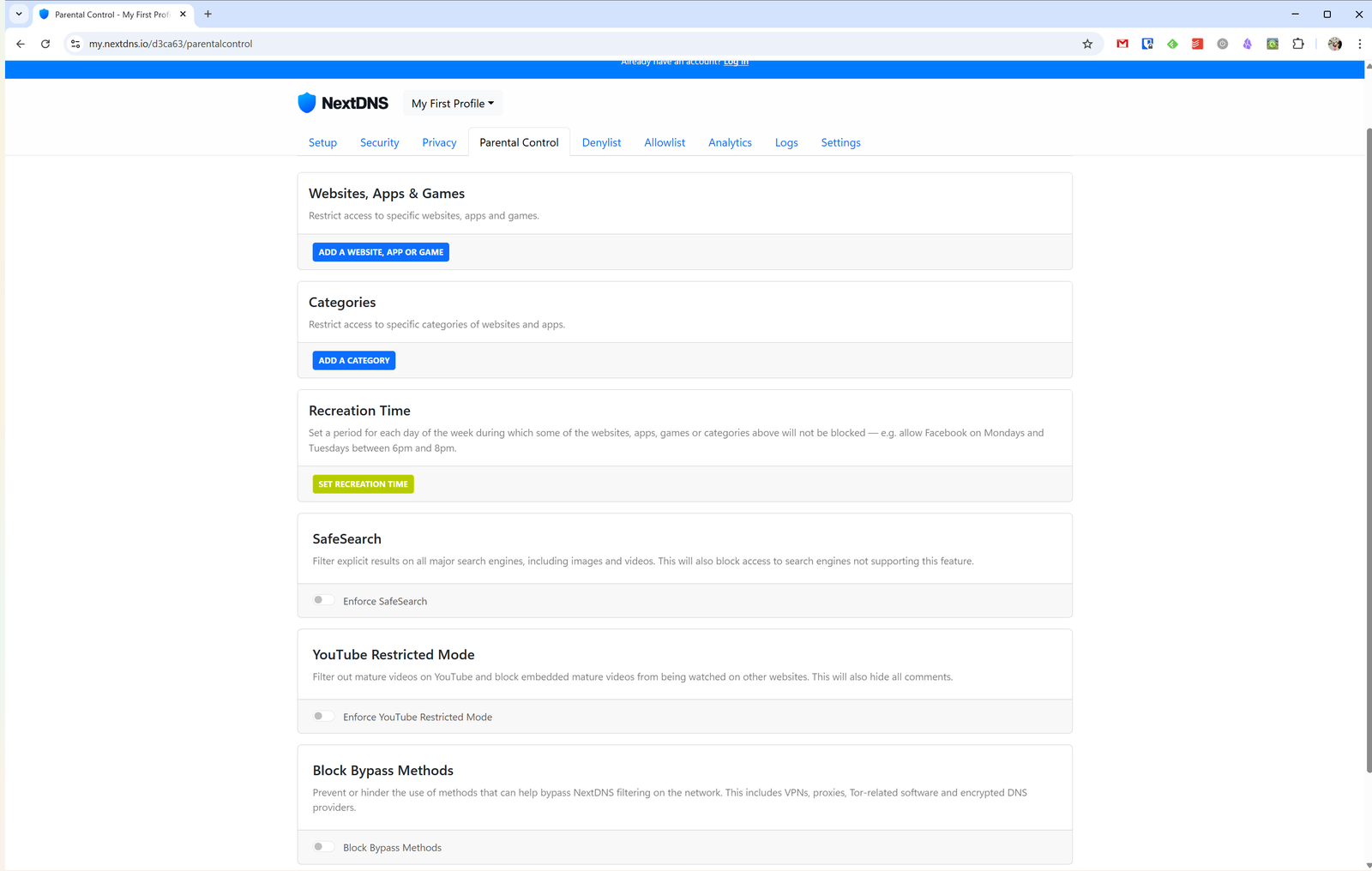 That means to restrict access, you can simply configure your own DNS with your own rules. NextDNS lets you do this with minimal effort.