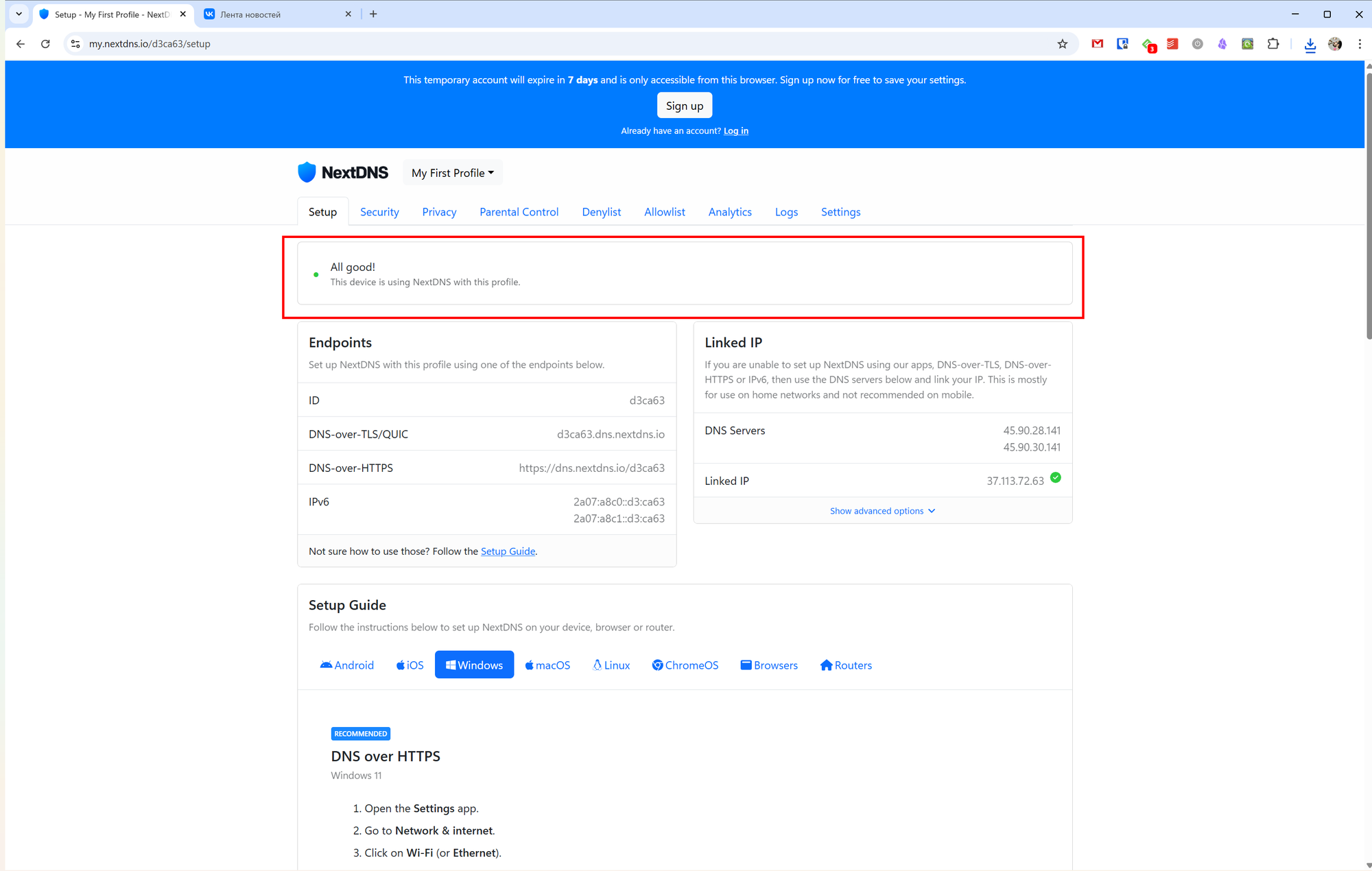 What I like about NextDNS is how simple it is. You can change DNS parameters on any device, and the changes apply across all devices using the same profile.