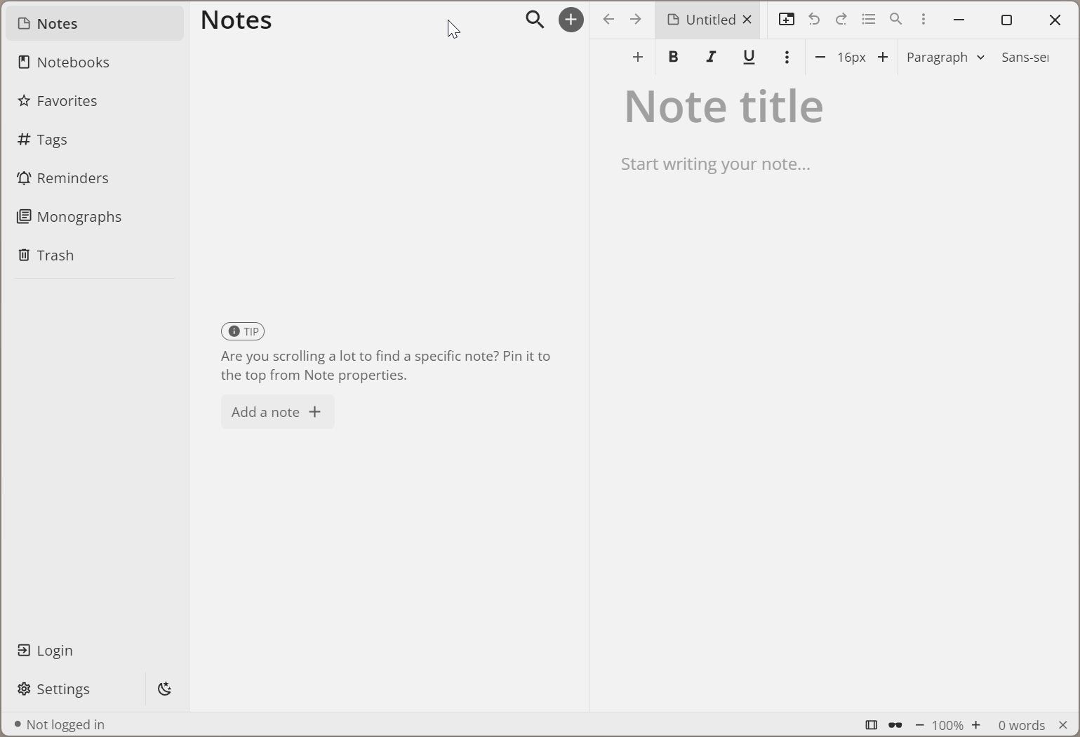 Like any note-taking app, Notesnook has three main areas: