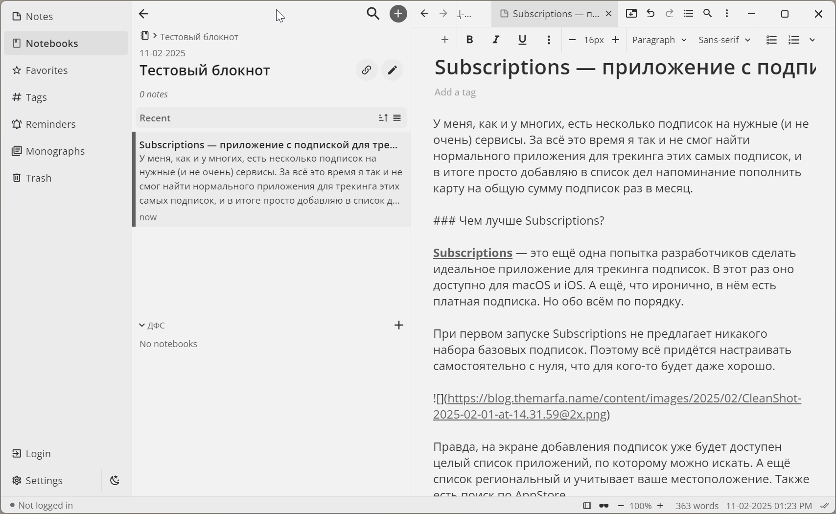 This is where things get interesting. You can use Notesnook for free, but with very strict limitations. The free plan includes synchronization, but you can only create up to 20 notebooks, and attachments won’t be available in your notes. The number of tags is also limited.