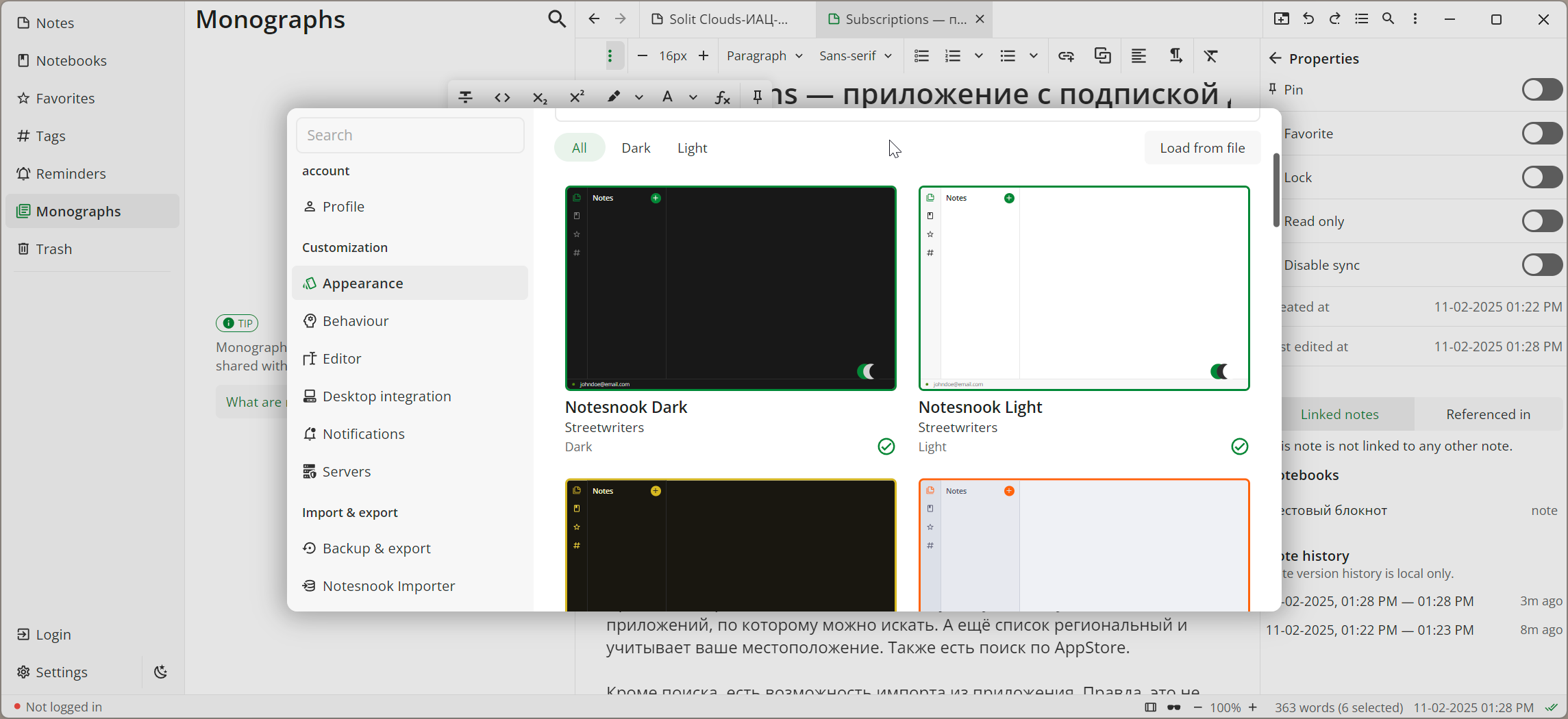At this point, I would like to note that the website, servers, and other online components of Notesnook seem to be accessible from Russia at first glance. However, without special tools, there are often issues with downloading distributions or opening the website.
