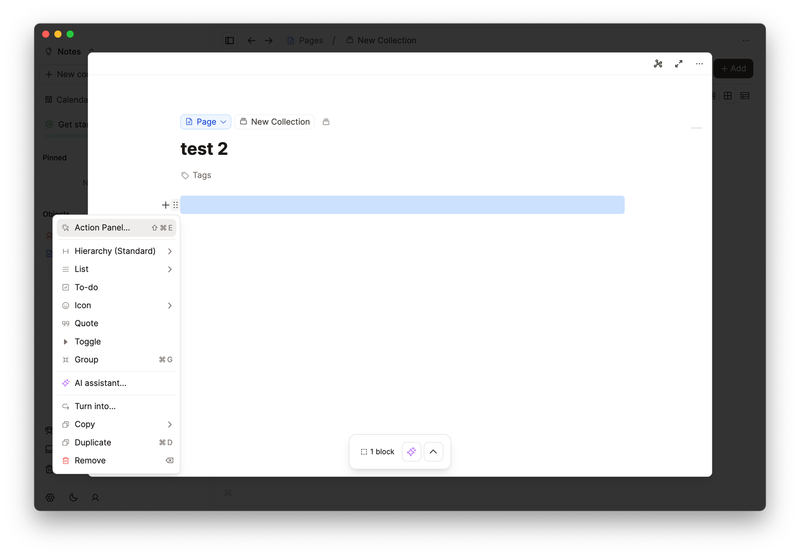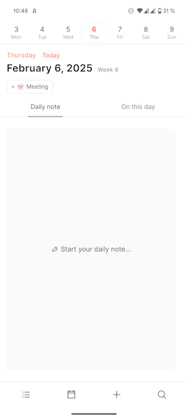 It’s almost the same as Notion. You have two panels: one for navigation through notes, and the other for the content of the note itself. Depending on the type of note, a third panel may appear, like a calendar.