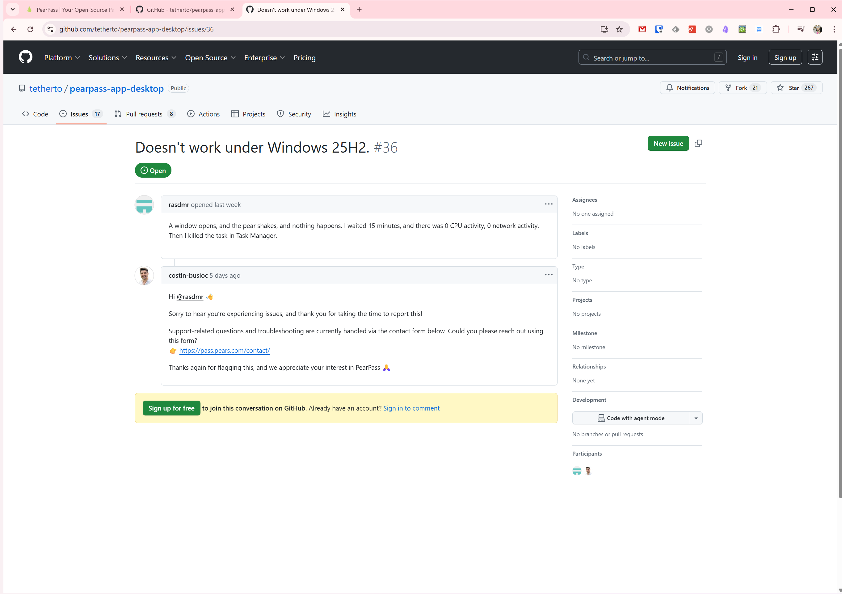 That said, my outlook isn’t particularly optimistic. All issues on GitHub are redirected to support contacts, which clearly won’t speed up their resolution.