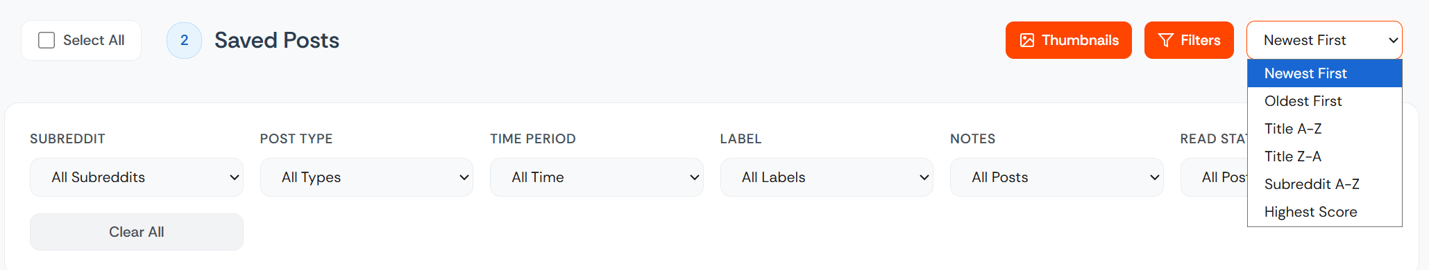 In the All Posts section, you can see all your saved posts and perform full-text searches across them, with AI-powered search available on paid plans.