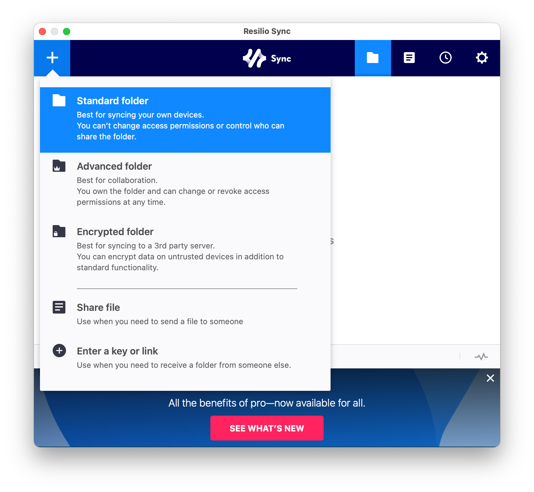 • Standard Folder – for syncing between your own devices. You can’t manage access permissions.