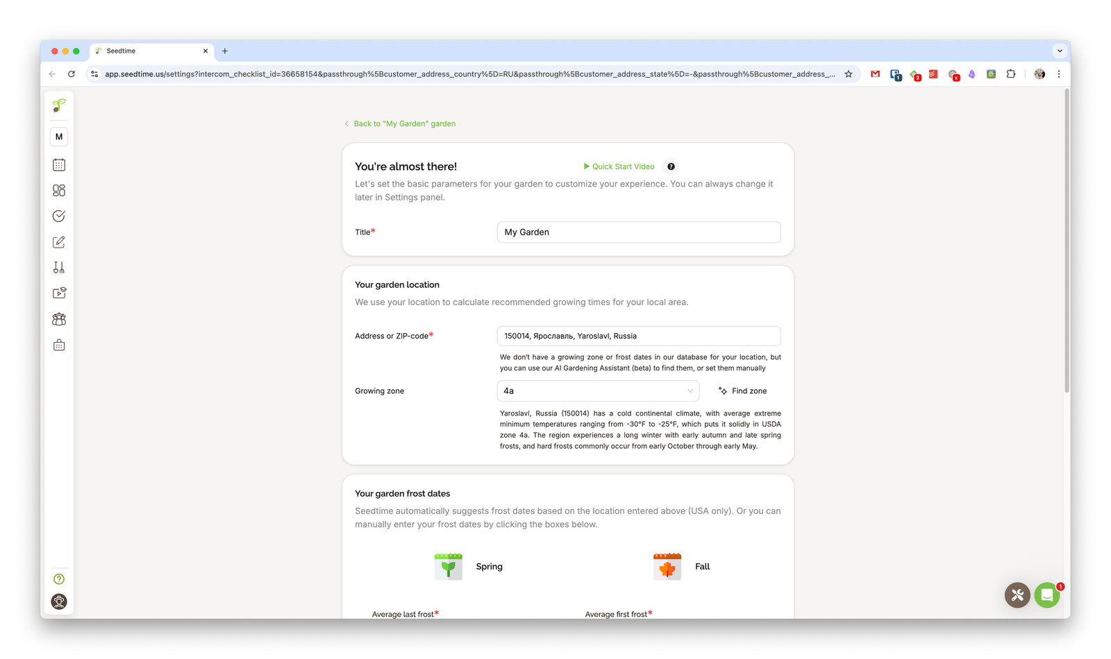 When registering, you’ll be asked not only for a username and password, but also for your country and zip code. You can change these later, but I recommend entering them correctly right away since the app uses this data to suggest planting schedules.