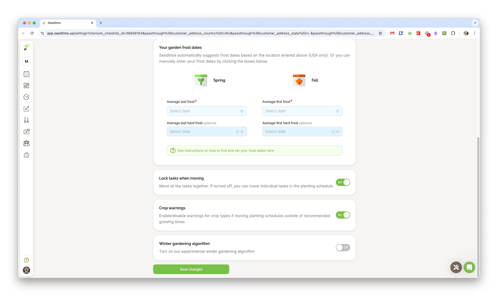 For example, on the main screen shown above, Seedtime predicts frost dates based on your location and growing zone. Note, however, that zones are determined by the USDA (U.S. Department of Agriculture) classification.