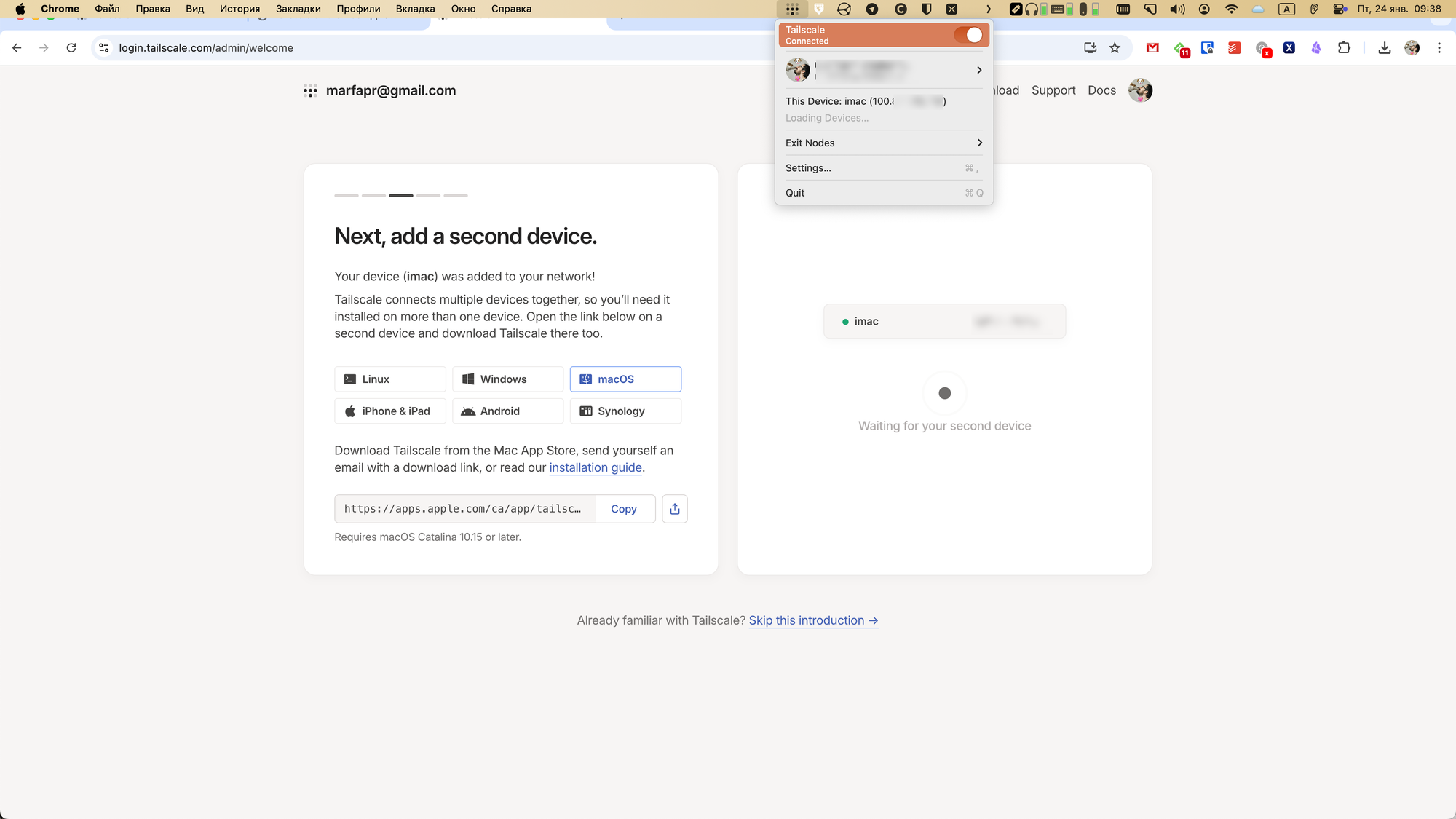 Tailscale is an easy-to-use system for creating private VPN networks based on the WireGuard protocol. It allows you to connect multiple devices into a secure, encrypted network regardless of their location.