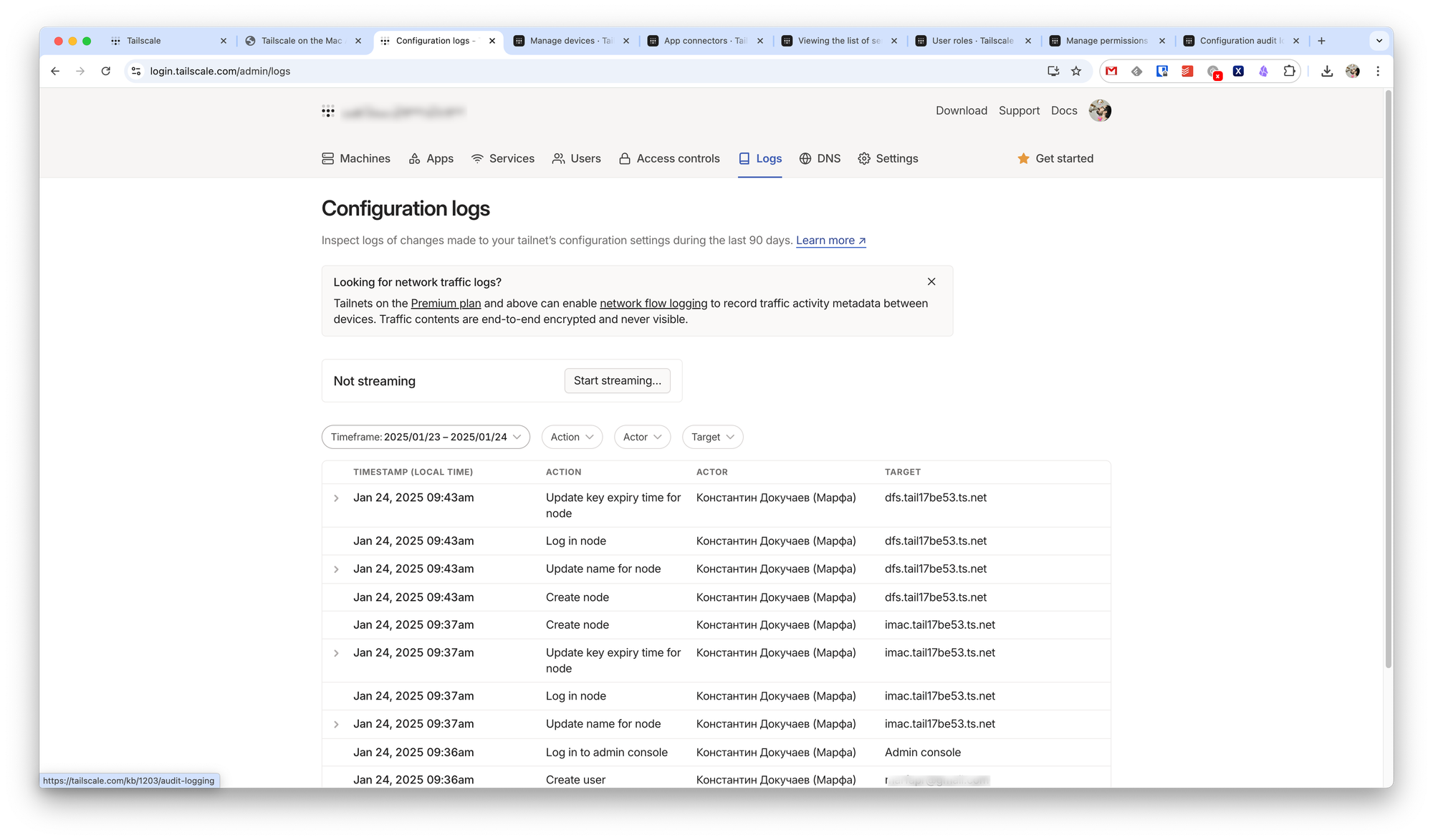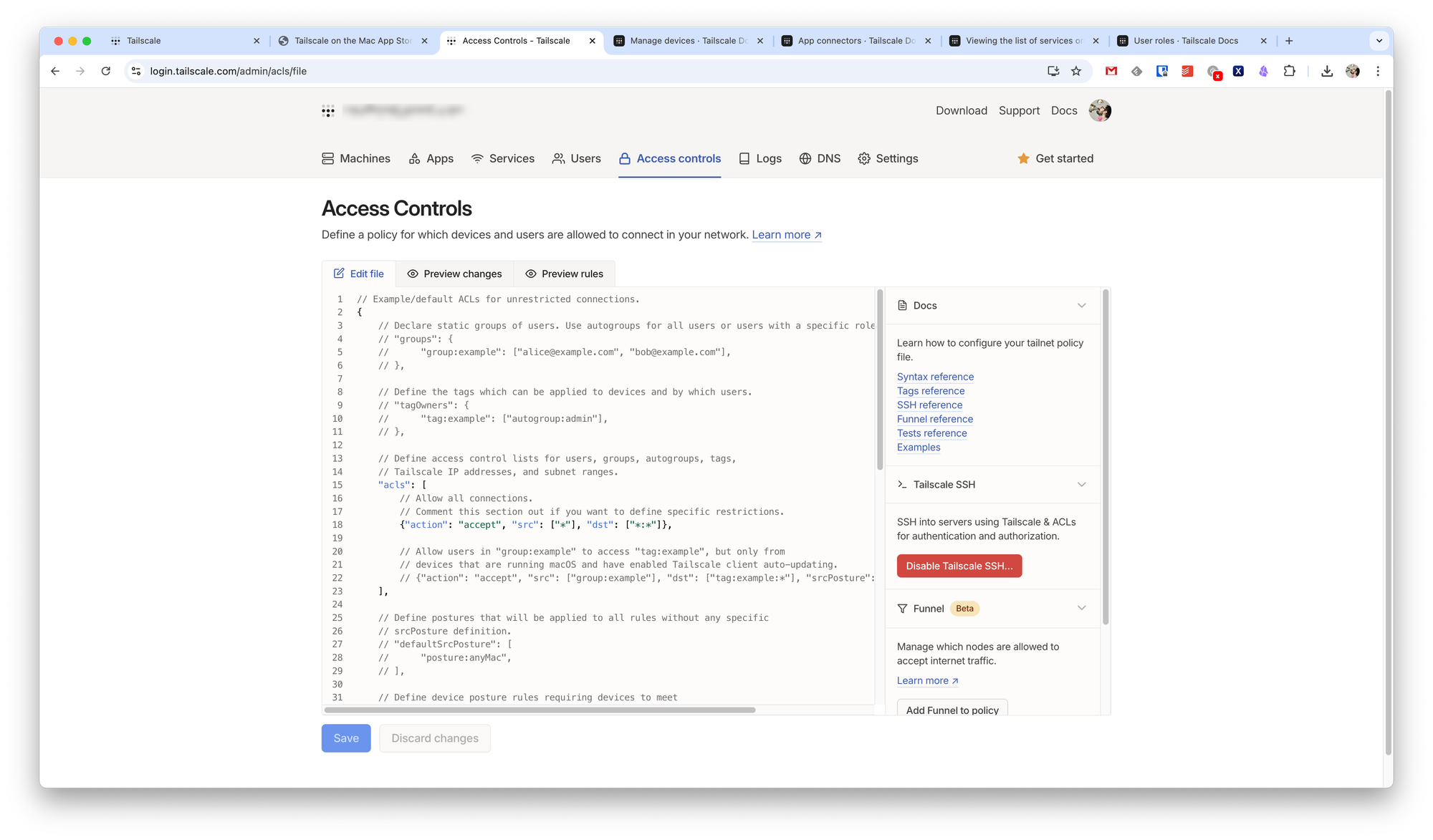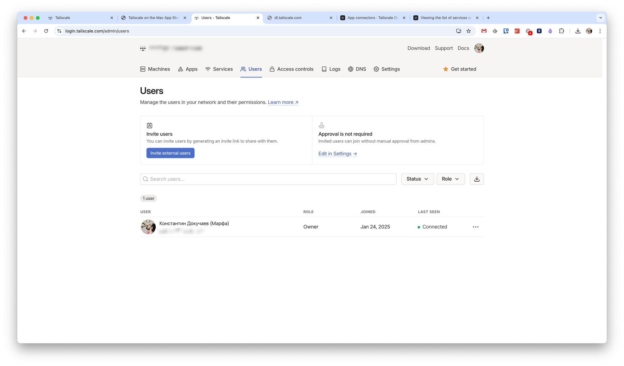 Tailscale’s admin panel consists of seven sections, allowing you to manage and control user access efficiently.