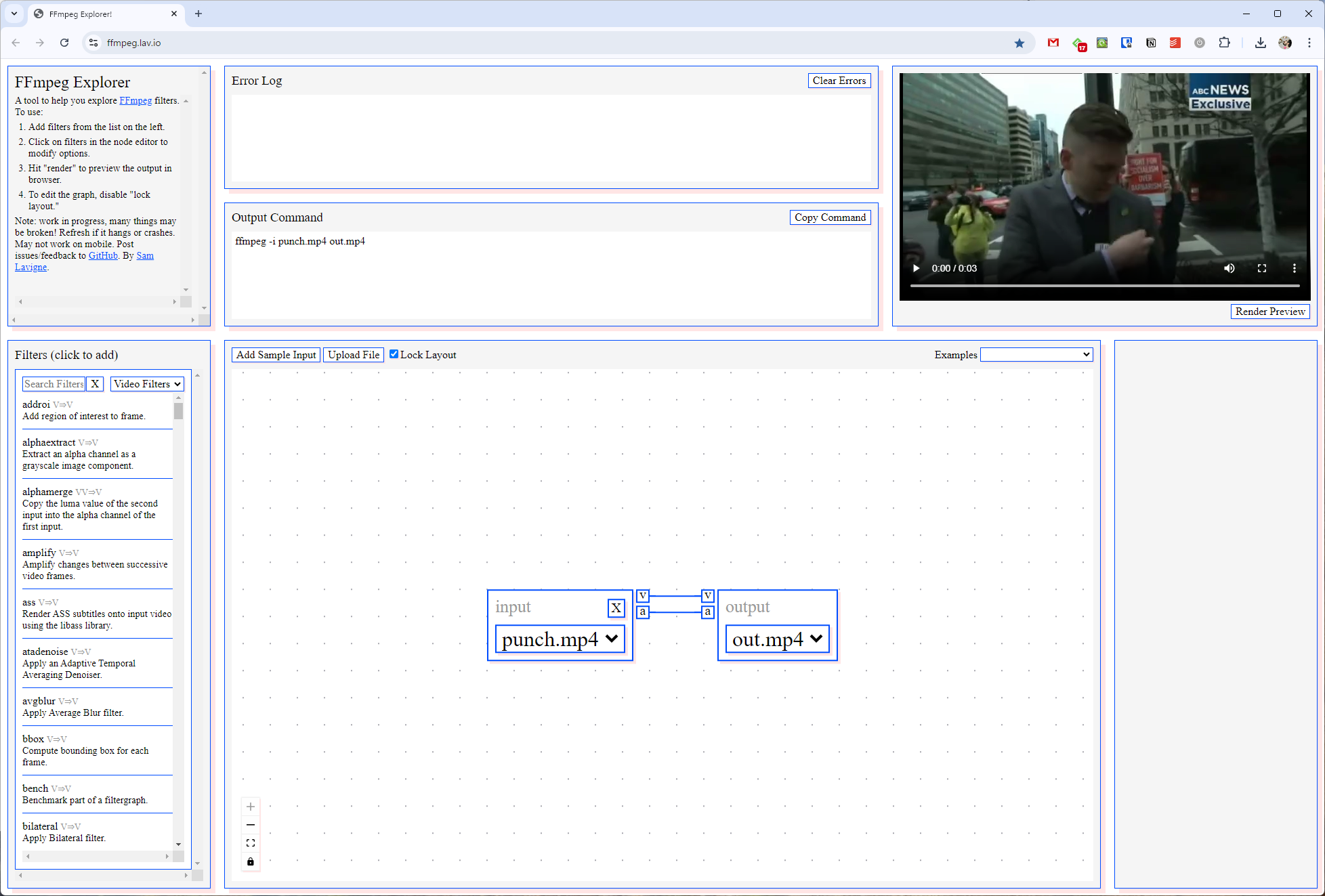 Not exactly a graphical frontend for FFmpeg, but still a useful tool for those in the know. With this service, you can generate commands to execute in FFmpeg. You can also edit files after uploading them, but the main idea is that you set up your filters for video processing, test them, and then manually execute the necessary commands.